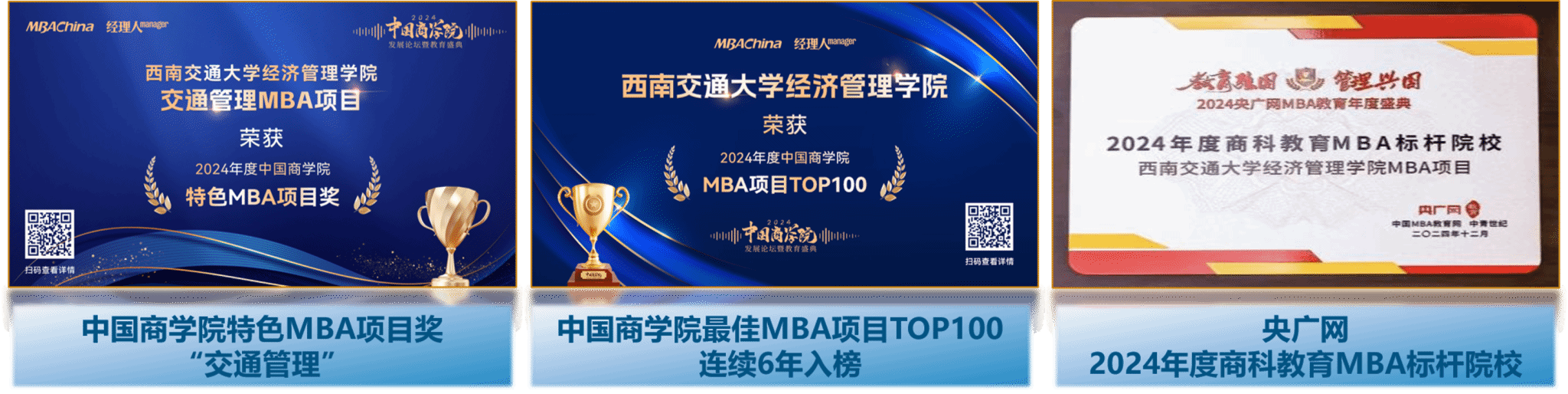 西南交通大学经济管理学院在科研教学和人才培养上持续与国际标准接轨,自2016年首次获得AMBA认证以来,至今已成为中国大陆第7,同时也是四川省唯一同时获得AMBA、AACSB和BGA三大国际认证的学院。展示了学院在持续提升教学质量,提供优质教育体验以及提升学术研究水平等方面的成果。未来,学院将不断把握和引领全球商业教育新趋势,为培养融通中外智慧、具有优秀量化分析能力的管理精英做出更大的贡献。